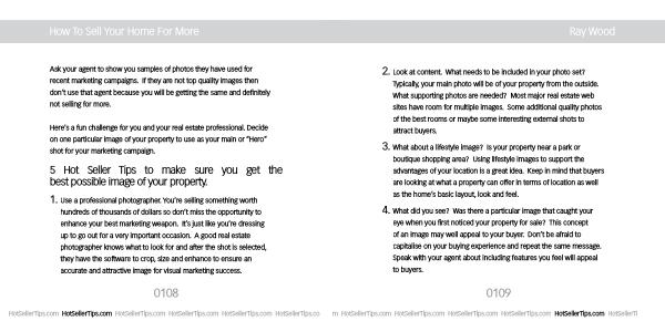 2 . Look at content . What needs to be included in your photo set ? Typically , your main photo will be of your property from the outside . What supporting photos are needed ? Most major real estate web sites have room for multiple images . Some additional quality photos of the best rooms or maybe some interesting external shots to attract buyers .