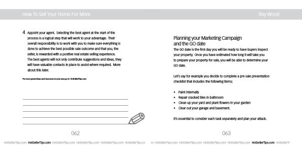 4 Appoint your agent . Selecting the best agent at the start of the process is a logical step that will work to your advantage . Their overall responsibility is to work with you to make sure everything is done to achieve the best possible sale outcome and that you , the seller , is rewarded with a positive real estate selling experience . The best agents will not only contribute suggestions and ideas , they will have valuable contacts in place to assist where required . More about this later .
