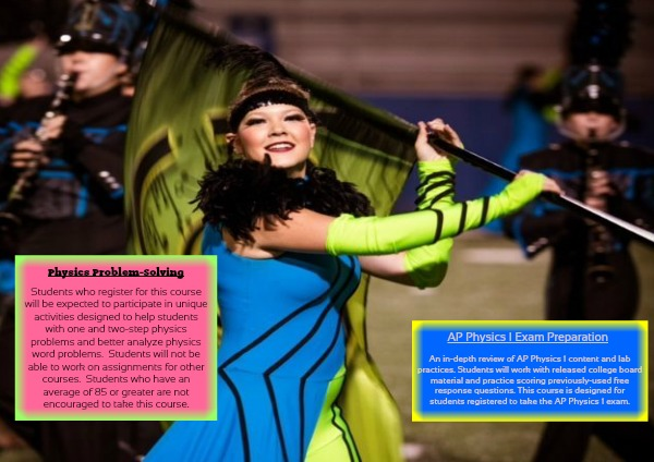 An in-depth review of AP Physics 1 content and lab practices. Students will work with released college board material and practice scoring previously-used free response questions. This course is designed for students registered to take the AP Physics 1 exam.