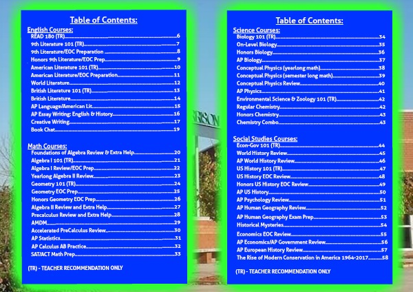 Environmental Science & Zoology 101 (TR)..................................42