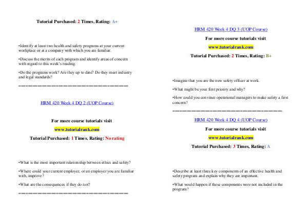 HRM 420 Week 4 DQ 4( UOP Course) For more course tutorials visit www. tutorialrank. com Tutorial Purchased: 3 Times, Rating: A