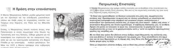 Η Μαντώ Μαυρογένους είχε γράψει πολλές επιστολές για να βοηθήσει στην επανάσταση του 1821 , αφού ήξερε πολλές ξένες γλώσσες . Μια από τις πιο σημαντικές επιστολές της ήταν αυτή στις Παρισινές κυρίες λέγοντας ότι :