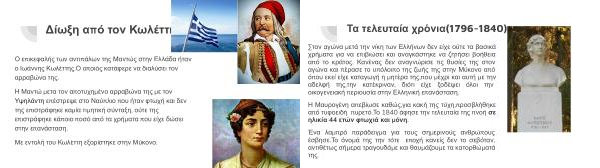 Με εντολή του Κωλέττη εξορίστηκε στην Μύκονο .