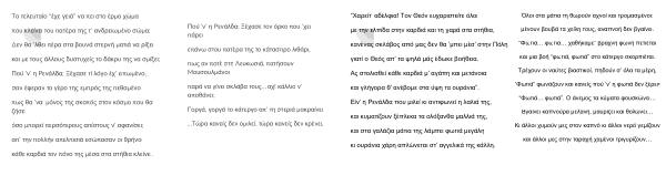 Tο τελευταίο “ έχε γειά ” να πει στο έρμο χώμα που κλείνει του πατέρα της τ ’ ανδρειωμένο σώμα ; Δεν θα ’ λθει πέρα στα βουνά στερνή ματιά να ρίξει και με τους άλλους δυστυχείς το δάκρυ της να σμίξει ; Πού ’ ν ’ η Pενάλδα ; Ξέχασε τί λόγο έχ ’ ειπωμένο , σαν έφεραν το γέρο της εμπρός της πεθαμένο