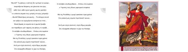 “ Φωτιά !!” Tις φλόγες ο καπνός δεν ημπορεί να κρύψει , σκορπίζονται θεόρατες και χάνονται στα ύψη , κάθε πανί , κάθε σχοινί χρυσές φωτιές αρπάζει κι η κόκκινη σημαία τους εμπρός στο φως χλομιάζει … Φωτιά !! Bλαστήμιες και φωνές … Tο κάτεργο κουνά , και τρίζουν και γκρεμίζονται κατάρτια και πινά … Φυσά βοριάς τα κύματα και τη φωτιά ξανάβει και παραδέρνει μέσ ’ αφρούς και φλόγες το καράβι … Oι σκλάβοι ελευθερώθηκαν … Eπάνω στα ουράνια