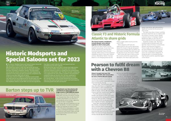 l The Historic Modified Sports and Special Saloon Series will step up a gear in 2023 with a six date schedule . After three trial events in 2022 , the new series will move forward significantly next year with an expanded calendar and ever increasing competitor interest . The pilot events run during the summer and autumn this year helped bring exposure to the series and gave prospective competitors the chance to see what HMSS was all about . In the end , a total of 14 different competitors raced suitable cars , which was an encouraging start for the first steps of a new series , which only started with early discussions last January . The emphasis remains on pre-1980 cars and the regulations have been revised ready for 2023 and beyond and are available from the HSCC website . By the end of the year , more than 70 drivers had made serious enquiries about HMSS , and the Club hopes that in 2023 the series will continue to build on a steady but ever-growing basis . Prime mover Steve Watton said : “ The HSCC has been unwavering in its support for the series , which is evident in the tremendous schedule of dates we have for 2023 . We have established a Facebook group and have many people preparing cars for the coming season . I ’ d like to thank everyone for the positive response they made during the first season and look forward to continued growth next year and beyond .”