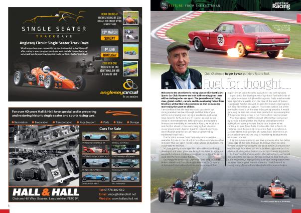 Welcome to the 2023 historic racing season with the Historic Sports Car Club . However we look at the coming year , there will be challenges for our sport . The general cost of living rises , global conflict , carnets and the continuing fallout from Brexit are all hurdles to be overcome so that we can once more enjoy the sport we all love . I am confident that the resilience and passion of our racing members will win through and that lots of you will be out enjoying your racing at weekends , just as we have done for half a century . Of course , as ever , we are living in interesting times . While personal and company finances are inevitably an immediate focus , we must also look further ahead to the ever changing fuel situation as our governments lead us towards reduced emissions , electrification and the loss of new cars powered by traditional fossil fuels .