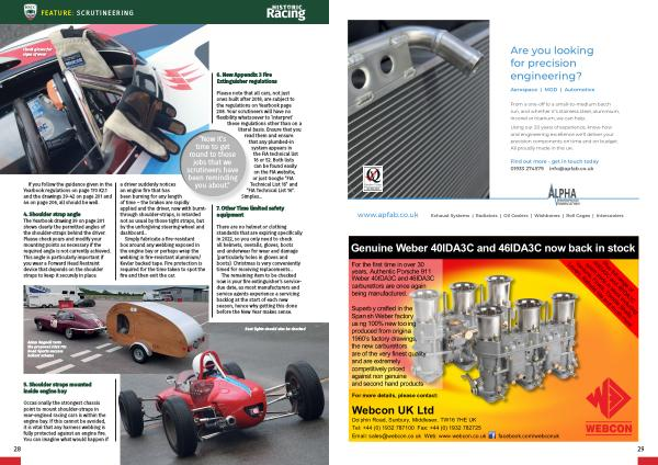4 . Shoulder strap angle The Yearbook drawing 39 on page 201 shows clearly the permitted angles of the shoulder-straps behind the driver . Please check yours and modify your mounting points as necessary if the required angle is not currently achieved . This angle is particularly important if you wear a Forward Head Restraint device that depends on the shoulder straps to keep it securely in place . a driver suddenly notices an engine fire that has been burning for any length of time – the brakes are rapidly applied and the driver , now with burntthrough shoulder-straps , is retarded not as usual by those tight straps , but by the unforgiving steering-wheel and dashboard …