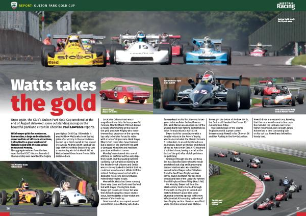The opening laps of the Guards Trophy featured a great contest between Andy Newall in his Chevron B6 and Ben Tusting in the family Lenham .