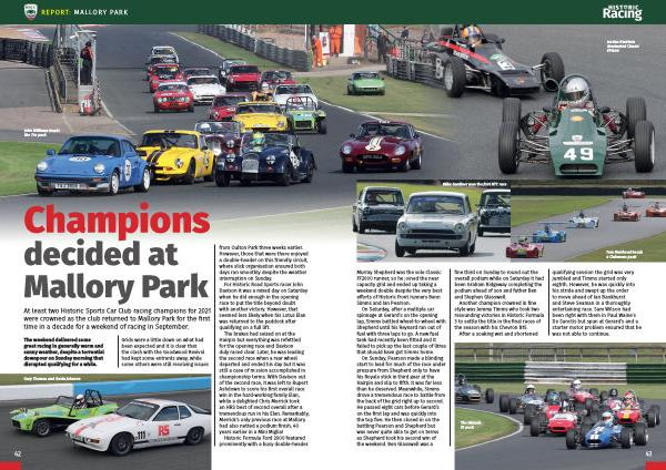 At least two Historic Sports Car Club racing champions for 2021 were crowned as the club returned to Mallory Park for the first time in a decade for a weekend of racing in September .