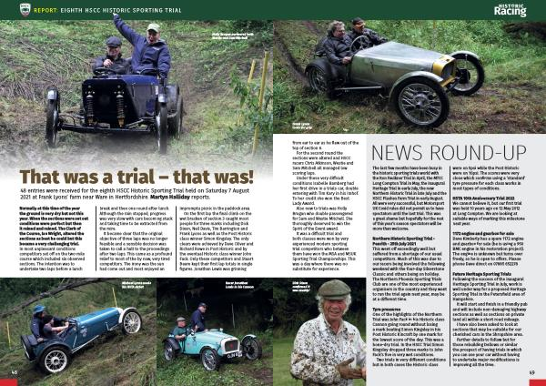 The last few months have been busy in the historic sporting trials world with the Ron Faulkner Trial in April , the MTCC Long Compton Trial in May , the Inaugural Heritage Trial in early July , the new Northern Historic Trial in late July and the HSCC Plashes Farm Trial in early August . All were very successful , but Motorsport UK Covid rules did not permit us to have spectators until the last trial . This was a great shame but hopefully for the rest of this year ’ s season spectators will be more than welcome .
