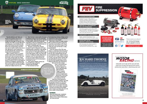 “ Then the chance of the TVR came along so I could play at the front end of 70s Road Sports and I got it in 2017 . We won the class championship last year in a shortened season . I want to race at least until I ’ m 70 . I was 21 when I started as I was a very late starter . Another two years will make 50 seasons . It ’ s much more fun than having holidays but try telling my wife that ! I got remarried to