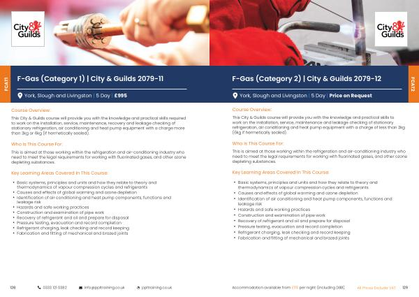 This City & Guilds course will provide you with the knowledge and practical skills required to work on the installation , service , maintenance , recovery and leakage checking of stationary refrigeration , air conditioning and heat pump equipment with a charge more than 3kg or 6kg ( if hermetically sealed ).