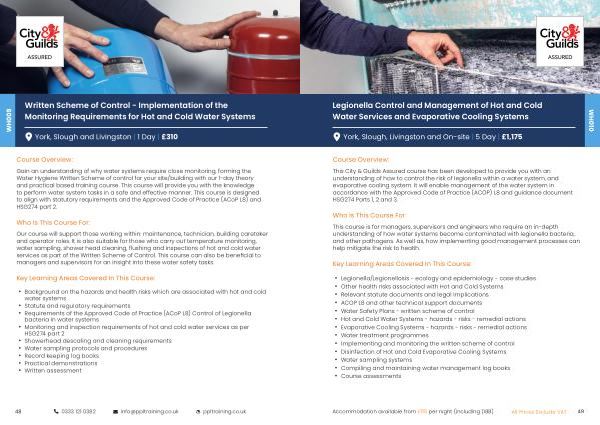 This City & Guilds Assured course has been developed to provide you with an understanding of how to control the risk of legionella within a water system , and evaporative cooling system . It will enable management of the water system in accordance with the Approved Code of Practice ( ACOP ) L8 and guidance document HSG274 Parts 1 , 2 and 3 .