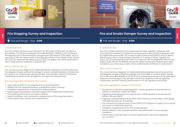This City & Guilds Assured course incorporates the latest legislation , guidance and manufacturers standards to enable the surveying and routine testing of dampers within the healthcare environment . The course includes practical examples of what to expect with the typical fire & smoke damper installation in a variety of areas . Together the theory and practical elements will assist in compliance with the Regulatory Reform ( Fire Safety ) Order , HTM 05-02 , BS9999 and site fire safety maintenance requirements . Upon completion , you will be issued with a City & Guilds Assured certificate of achievement .