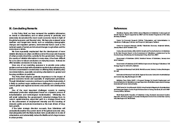 Addressing Urban Poverty in Uzbekistan in the Context of the Economic Crisis