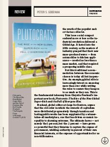 the fundamental takeaway from Chrystia Freeland’s important new book, Plutocrats: The Rise of the New Global