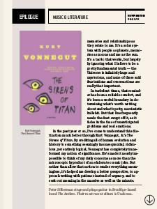 history to something seemingly inconsequential, ridiculous, yet entirely logical, Vonnegut has completely transformed my notion of significance. He’s made it nearly impossible to think of my daily concerns as more than the