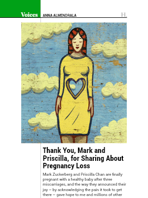 Yet seeing the Zuckerberg-Chan pregnancy/loss announcement on Friday jolted me back to my original thought: "Miscarriages aren't shameful secrets, and neither was mine!"