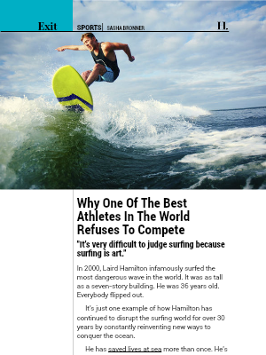 from his stepfather, 1960s pro surfer Bill Hamilton. The younger Hamilton’s refusal to compete professionally stems partially from this relationship.