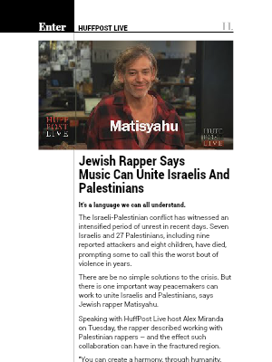 There are be no simple solutions to the crisis. But there is one important way peacemakers can work to unite Israelis and Palestinians, says Jewish rapper Matisyahu.