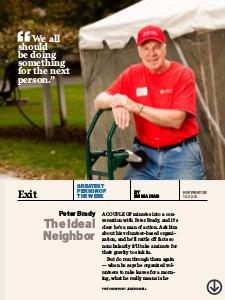 — when he says he organized volunteers to rake leaves for a morning, what he really means is he