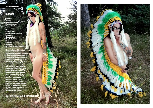 I love modeling. My parents inspire me to model and one day I hope to be on the cover of a magazine. My future goals as a model is to be known all over the world. My dream shoot is a rain forest shoot. My choice of music is old rock n roll, hip – hop and techno music. My choice in men is tall, dark and handsome. I am a small-town girl with big dreams. I would like to appear in all different types of magazines. I have been published in Celeb Riche Magazine, Sexy Inked Magazine, Pretty poison Magazine, intense Desire Magazine and now appearing in Hunnie Magazine… I am a versatile model with many different looks and I love creating unique pictures.