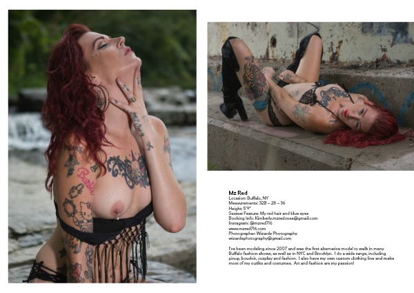 I’ve been modeling since 2007 and was the first alternative model to walk in many Buffalo fashion shows, as well as in NYC and Brooklyn. I do a wide range, including pinup, boudoir, cosplay and fashion. I also have my own custom clothing line and make most of my outfits and costumes. Art and fashion are my passion!