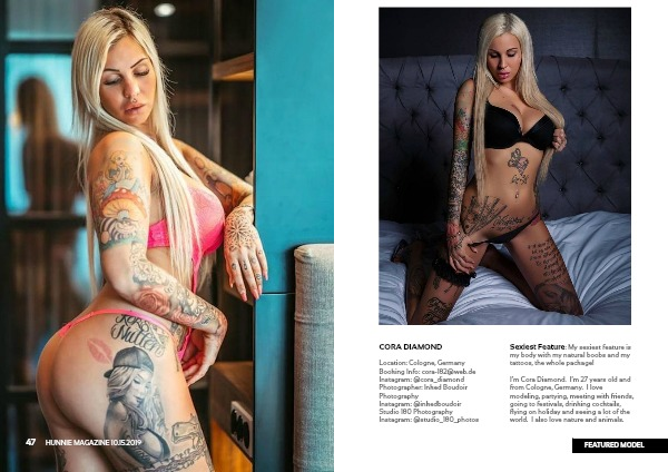 I’m Cora Diamond. I’m 27 years old and from Cologne, Germany. I love modeling, partying, meeting with friends, going to festivals, drinking cocktails, flying on holiday and seeing a lot of the world. I also love nature and animals.