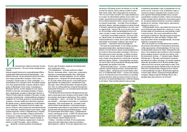 питание и обучение делает из собаки то, что Вы хотели бы видеть. Грань между охотой и пастьбой очень тонка. Вот собака несется за овцой... Что это, охота или пастьба? Тут судья внимательно следит за действиями собаки, куда гонит, как гонит, как пытается воздействовать на овцу … Если собака пытается гнать, и куда попало, злобно хватает животину – охотник. Если начинает кружить вокруг, пытаясь прижать скотину ближе к хозяину, аккуратно прихватывает за ноги, лает, не давая уйти – пастух! Но и тут не все однозначно. Еслисобака слабо концентрируется на скотине, уходит от овец, вяло контактирует с ними – « инстинкт в наличии имеется ». Если же собака, увидев овец, не отвлекается от них, активно взаимодействует с ними, пусть даже не обращая внимания на команды хозяина, преследует их взглядом – « инстинкт пастуха выражен ». Что касается испытаний, то тут собака должна продемонстрировать заинтересованность в работе, истово желать пасти, концентрироваться на стаде и четко выполнять команды « пастуха ». На самом деле пасет человек, а собака, послушная его воле, только помогает. Именно на человеке лежит ответственность, стратегия и тактика работы собаки. Собака – продолжение его руки, его воли! Два стиля определяет Международная федерация для работы пастухов. « Классический стиль »- для всех собак первой группы( кроме бордер колли), самоедов( оленегонная лайка), зеннехундов( скотогонные собаки), и « Собирающий стиль »- только для бордер колли. В классическом стиле собака по команде должна выгнать овец из загона и вести стадо за пастухом, не давая разбредаться, забегать вперед и отставать. При необходимости она должна остановить движение стада и удерживать его на месте, возле « пастуха » или, оставшись одна со стадом на выпасе, внимательно следить за стадом, препятствуя разбреданию овец, и ждать дальнейших команд хозяина. Также по команде, собака должна уметь провести стадо вдоль дороги, не давая овцам выходить под колеса машин, провести по мостику, через ворота, выполнить повороты стада и т. д. « Собирающий стиль » дополняется отгоном стада на большое расстояние без « пастуха », а только выполняя его команды на расстоянии, поиск и подгон стада. Да и сам стиль работы собак несколько отличается. Бордер колли во многом воздействует на овец взглядом. Собаки этой породы имеют очень специфический, так называемый « сильный взгляд ». Вот уже второй год тестирование на наличие пастушьего инстинкта и испытания пастушьих собак проводятся в Екатеринбурге. В 2014 году тестирование прошло 29 собак. Неприятно удивило, что основная масса собак не смогла выполнить команду сидеть и остаться на месте, хотя бы несколько секунд …. С трудом судья, Мария Кобликова( г. Москва), вытаскивала наличие инстинкта из собак, которые, по своему происхождению, призваны пасти. Великолепные красавцы колли не желали даже видеть овец. Зато полугодовалый щенок бобтейла был на высоте! Неплохо тестировались бордер колли, шелти и австралийские овчарки. Испытания прошла только одна собака, годовалая австралийская овчарка, Шаньга( Apriori Shining Show). Но с прекрасным результатом-90 баллов!