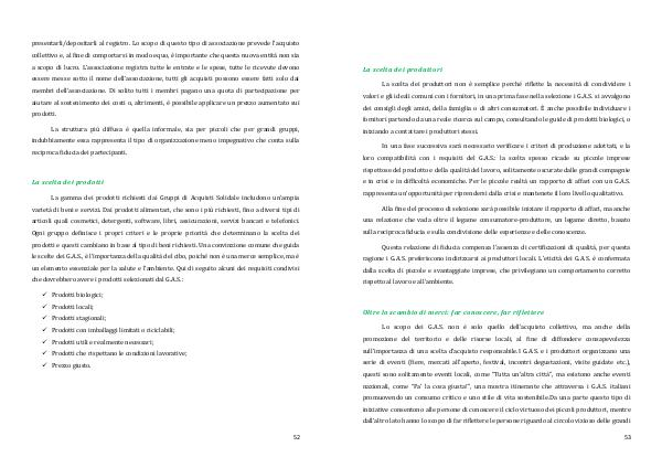 Questa relazione di fiducia compensa l’ assenza di certificazioni di qualità, per questa ragione i G. A. S. preferiscono indirizzarsi ai produttori locali. L’ eticit { dei G. A. S. è confermata dalla scelta di piccole e svantaggiate imprese, che privilegiano un comportamento corretto rispetto al lavoro e all’ ambiente.