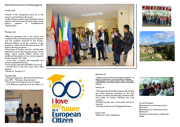 * Meeting at the Hotel dei Congressi: Presenting the others Partners; workshop on the first teachers meeting and planning of future works and media of contact. Planning the next mobility.