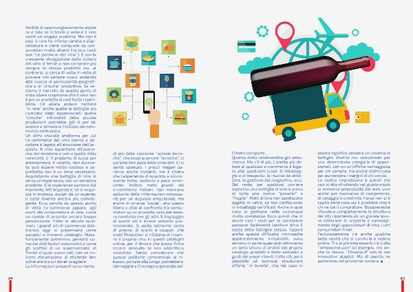 l’ intero comparto. Quanto detto sembrerebbe già abbastanza. Ma c’ è di più. L’ anello più debole di qualsiasi e-commerce è legato alle spedizioni( costi di imballaggio e di trasporto, le risorse da utilizzare, la gestione del magazzino, ecc). Del resto, per qualsiasi corriere espresso una bottiglia di vino è prima di tutto una merce“ pesante” e“ fragile”. Molti di loro non spediscono oggetti in vetro, se non confezionati in imballaggi certificati. Anche in quel caso la gestione resta comunque molto complessa. Ecco quindi che in alcuni casi i costi per la spedizione possono facilmente lievitare oltre il costo della bottiglia stessa. Eppure anche queste difficoltà intrinseche apparentemente irrisolvibili, sono almeno in parte superabili attraverso un serio lavoro di analisi del proprio catalogo prodotti e delle abitudini e gusti dei propri clienti. Fatto ciò, poi è possibile ad esempio strutturare offerte“ in bundle”, che nel caso in bbbbbbbbbb esame significa vendere un insieme di bottiglie diverse ma selezionate per una determinata categoria di appassionati, con un un’ offerta vantaggiosa per chi compra, ma anche ottimizzata per aumentare i margini di chi vende. La nostra impressione è quindi che non si stia sfruttando nel giusto modo le immense potenzialità del web, vuoi anche per mancanza di competenze, di coraggio e creatività. Forse non si è capito bene cosa sia il prodotto vino e chi ne sia il compratore. Bisognerebbe rifondare completamente la struttura dei siti, ripartendo da un grande lavoro editoriale di scoperta e coinvolgimento degli appassionati di vino, i veri consumatori finali. Fortunatamente c’ è anche qualche bella novità che si comincia a vedere online. Tra le più interessanti c’ è il sito“ wineowine. com” ad esempio, ma anche lo stesso“ Viniamo. it” con le sue innovative playlist. Ma di questo ne parleremo nel prossimo numero. ■