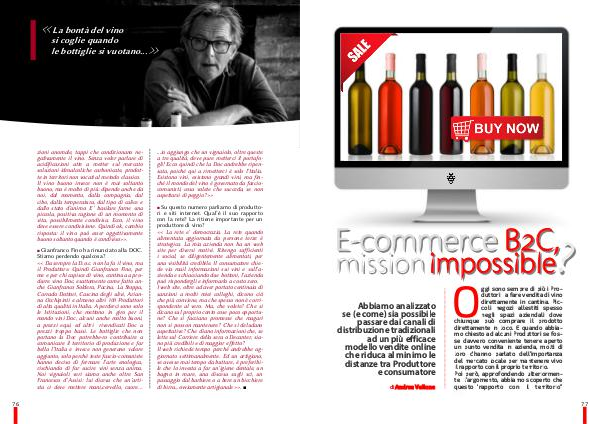 ■ Su questo numero parliamo di produttori e siti internet. Qual’ é il suo rapporto con la rete? La ritiene importante per un produttore di vino? << La rete e’ democrazia. La rete quando alimentata aggiornata da persone terze è strategica. La mia azienda non ha un web site per diversi motivi. Ritengo sufficienti i social, se diligentemente alimentati, per una visibilità credibile. Il consumatore chiede via mail informazioni sui vini e sull’ a- zienda e schiacciando due bottoni, l’ azienda può rispondergli e informarlo a costo zero. I web site, oltre ad aver portato centinaia di sanzioni a molti miei colleghi, dicono ciò che più conviene, ma che spesso non è corrispondente al vero. Ma, che volete? Che si dicano sul proprio conto cose poco opportune? Che si facciano promesse che magari non si posson mantenere? Che si deludano aspettative? Che diano informazioni che, se lette sul Corriere della sera o Decanter, siano più credibili e di maggior effetto? Il web richiede tempo perché andrebbe aggiornato settimanalmente. Ed un artigiano, se avesse mai tempo da buttare, è preferibile che lo investa a far un’ igiene dentale, un bagno in mare, una discesa sugli sci, un passaggio dal barbiere o a bere un bicchiere di birra... ovviamente artigianale >>. ■