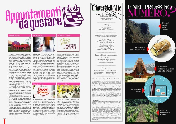 ..................................................................................... Copyright: Tutto il materiale pubblicato, testi, foto e illustrazioni, è da ritenersi di proprietà degli Autori e, qualora non indicato, dell ' Editore. Tuttavia, alcune foto o immagini presenti nella rivista sono costruite da materiale largamente diffuso nel web e ritenuto di pubblico dominio. Su tali foto ed immagini il sito non detiene, quindi, alcun diritto d ' autore e non è intenzione dell ' Autore di appropriarsi indebitamente di immagini di proprietà altrui. Pertanto, se detenete il copyright di qualsiasi foto, immagine o oggetto presente, oggi ed in futuro, su questa rivista, o per qualsiasi altro problema riguardante il Diritto d ' Autore, inviate immediatamente una e-mail all ' indirizzo info @ ipiaceridellavite. it indicando i vs dati e le immagini in oggetto così che si possa risolvere rapidamente il problema( ad esempio con l ' inserimento, gratuito e permanente del nome dell ' Autore, oppure sostituendo o rimuovendo definitivamente la foto o quant ' altro).
