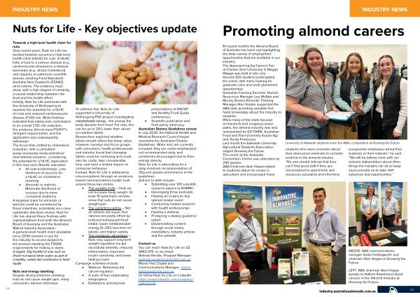 To address this, Nuts for Life supported a University of Wollongong PhD project investigating metabolisable energy- the energy the body absorbs from food. For nuts, this can be up to 26 % lower than values on nutrition labels. Researchers explored whether labels should reflect this lower value. However, surveys and focus groups with consumers, health professionals, and industry found that changing labels could be confusing and could also be costly, take considerable time, and have a limited impact on consumer behaviour. Instead, Nuts for Life is addressing misconceptions through an evidencebased communications toolkit, built around three key stories: