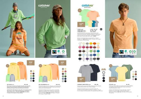 Materiaali: 60 % puuvilla, 40 % polyesteri, harjattu sisäpinta, 280 g / m ². Väri: 100 valkoinen, 120 meleerattu harmaa, 400 punainen, 600 tummansininen, 616 dark navy, 632 sininen, 728 vihreä, 900 musta, 935 harmaa.