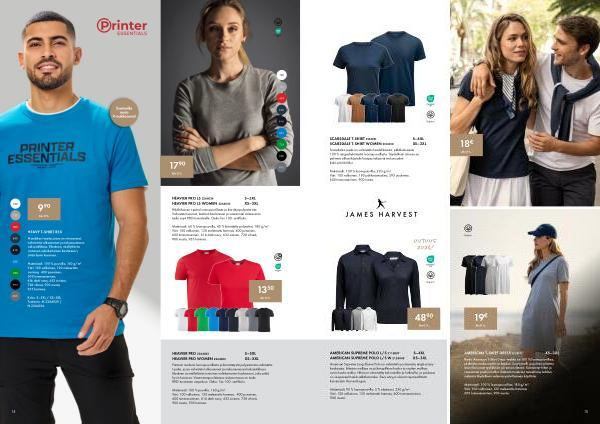 Materiaali: 60 % puuvilla, 40 % polyesteri, 280 g / m ². Väri: 100 valkoinen, 120 meleerattu harmaa, 400 punainen, 600 tummansininen, 616 dark navy, 632 sininen, 728 vihreä, 900 musta, 935 harmaa.
