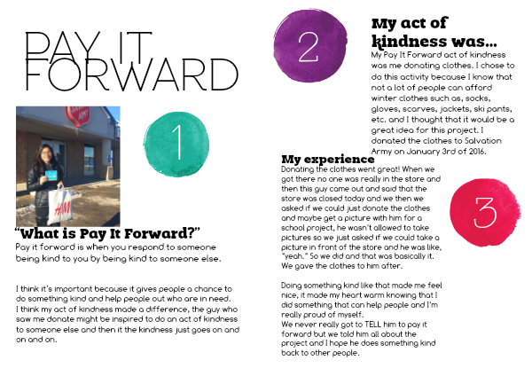 Pay it forward is when you respond to someone being kind to you by being kind to someone else.