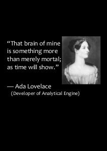 “That brain of mine is something more than merely mortal; as time will show.” — Ada Lovelace (Developer of Analytical Engine)