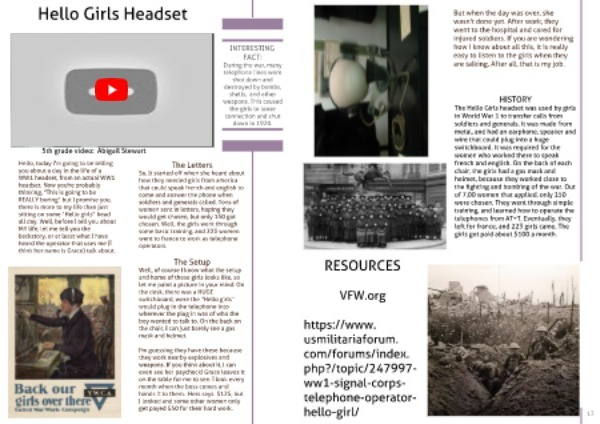 HISTORY The Hello Girls headset was used by girls in World War 1 to transfer calls from soldiers and generals . It was made from metal , and had an earphone , speaker and wire that could plug into a huge switchboard . It was required for the women who worked there to speak french and english . On the back of each chair , the girls had a gas mask and helmet , because they worked close to the fighting and bombing of the war . Out of 7,00 women that applied , only 150 were chosen . They went through simple training , and learned how to operate the telephones from AT + T . Eventually , they left for france , and 223 girls came . The girls got paid about $ 100 a month .