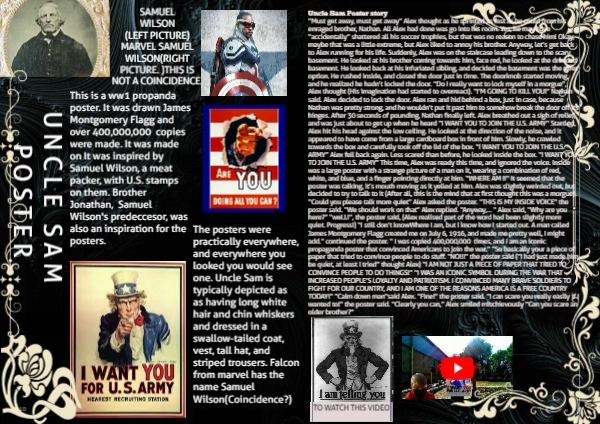 The posters were practically everywhere, and everywhere you looked you would see one. Uncle Sam is typically depicted as as having long white hair and chin whiskers and dressed in a swallow-tailed coat, vest, tall hat, and striped trousers. Falcon from marvel has the name Samuel Wilson(Coincidence?)