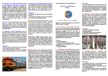 4. Challenge - Poor railway terminal quality: The terminal quality and the handling of goods at these terminals is extremely poor and inefficient which leads to damage of considerable amount goods which is not well-received by the transporters facing already high transport costs.