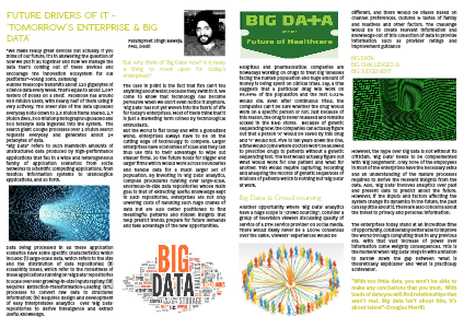Hospitals and pharmaceutical companies are nowadays working on drugs to treat big illnesses facing the human population and huge amount of money is being spent on clinical trials. Say, a trial suggests that a particular drug will work on 99.99% of the population and the rest 0.01% would die. Even after continuous trials, the companies can’t be sure whether the drug would work on a specific person or not. Just because of this reason, the drug is never released and remains locked in the R&D stores. Because of genetic sequencing now, the companies can actually figure out that a person ‘X’ would be saved by this drug and ‘Y’ would not. Five to ten years down the line, a time would come where doctors won’t be allowed to prescribe drugs to patients without a genetic sequencing test. The test would actually figure out what would work for one patient and what for another. This would require capturing, recording and analysing the records of genetic sequences of millions of patients which is nothing but ‘Big Data’ at work.
