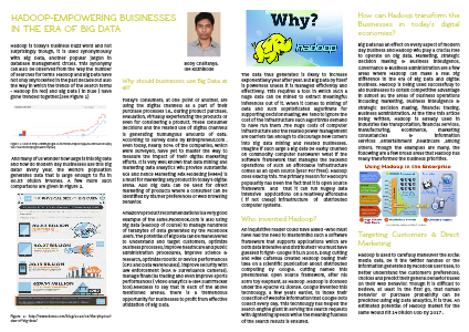 The data thus generated is likely to increase exponentially year after year. But Big Data by itself is powerless unless it is managed efficiently and effectively. This requires a tool in which such a huge data can be mined to extract meaningful inferences out of it. When it comes to mining of data and such sophisticated algorithms for supporting decision making, we tend to ignore the cost of the infrastructure such algorithms demand to have run them .The huge costs of computer infrastructure and the related power management are barriers tall enough to discourage new comers into big data mining and related businesses. Imagine if such large a Big data be easily churned on commodity computer hardware? What if the software framework that manages the backend operations of such an affordable infrastructure comes as an open source (yes? For free!). Hadoop does exactly this. The primary reason for Hadoop's popularity has been the fact that it is open source framework and that it can run hugely data intensive applications on a relatively affordable( if not cheap) infrastructure of distributed computer systems.