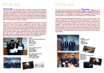 This year again, the event attracted active participation from various B-schools across the country. 1058 students registered for the first round. 16 teams qualified for the second round. These teams were given an operations based cased study, the solutions to which were to be submitted online. After evaluation of the second round entries, four teams qualified for the third and the final round for which they travelled from various places across the country all the way to FMS. The final round also saw presentation from two other teams from FMS who were given entry on a wildcard basis. Team from FMS, Delhi were the winners while the runners-up prize was shared by teams from IMI, DElhi & FMS, Delhi.