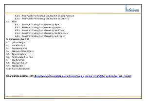 8.4 RoW 8.4.1 RoW Perforating Gun Market by Type 8.4.2 RoW Perforating Gun Market by Depth 8.4.3 RoW Perforating Gun Market by Well Type 8.4.4 RoW Perforating Gun Market by Well Pressure 8.4.5 RoW Perforating Gun Market by Sub-region 9. Companies Covered 9.1 Schlumberger 9.2 Weatherford 9.3 Dynaenergetics 9.4 National Oilwell Varco 9.5 Baker Hughes 9.6 Yellow Jacket Oil Tool 9.7 Hunting PLC 9.8 Promperforator 9.9 Halliburton 9.10 Core Laboratories