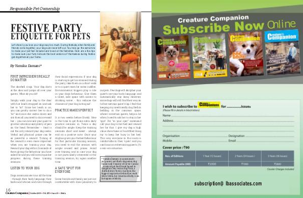 Online ISSN 0976 - 4801 ISSN 0976 - 4801 ISSN 0976 - 4801 s subscription@lbassociates.com October 2019 • Vol. XII • Issue 10 • Noida 17 | Creature Companion