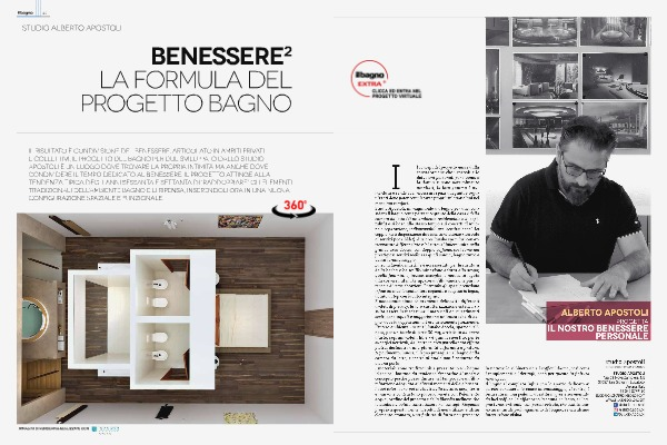 l concept del progetto nasce dalla constatazione che i corredi e le dotazioni personali per l ’ uomo e la donna si sono notevolmente ampliati ; la loro gamma è aumentata e rende così necessari spazi adeguati e organizzati dove poter completare i propri riti quotidiani nel massimo comfort . Studio Apostoli , immaginando un bagno per due , considera il bagno come parte integrante della casa e della camera da letto ( di un ambiente residenziale o di ospitalità ) e si basa allo stesso tempo sui concetti di unione e separazione , indispensabili per ‘ sentirsi bene ’. La coppia ha a disposizione due identiche stanze riservate ai servizi ( wc e bidet ), due aree lavabo speculari con attrezzature differenziate e ‘ si ritrova ’ invece unita nella grande area doccia , con doppio soffione , così come nei prestigiosi servizi wellness quali sauna , bagno turco e vasca idromassaggio . La zona lavabo maschile è accessoriata per la rasatura della barba e ha un ’ illuminazione adatta allo scopo ; quella femminile , invece , accoglie le necessità legate alla cosmesi , al make up , con un ’ illuminazione più intensa e diverse dotazioni . Entrambi gli spazi prevedono infine un mobile contenitore capiente e sospeso in legno , dotato di top con lavabo integrato . E nonostante siano chiaramente delineati i differenti ambiti di privacy , la loro caratterizzazione estetica risulta essere la medesima : i materiali e i rivestimenti scelti sono uguali e suggeriscono un ’ unica idea di bagno , dove la doppia anima è esclusivamente funzionale . L ’ intero ambiente - servizi , lavabo doccia , spazio wellness , per un totale di circa 30 mq , arricchito da opere d ’ arte , soprammobili , libri - è quindi rivestito , per le superfici verticali , da lastre in grès porcellanato effetto pietra , declinati in una pluralità di formati e finiture . A pavimento , invece , il legno prosegue nel bagno dalla camera da letto , rispetto al quale non è separato da alcuna porta . I materiali sono tradizionali e presentano un bagno ‘ classico ’, lontano da tendenze decorative di moda e concepito perché possa durare nel tempo , con un ’ illuminazione adeguata ai diversi momenti della giornata . I suoi colori sono poi mutuati dalla natura : ocra , terra e marrone contrastano piacevolmente con l ’ elemento acqua , cardine del progetto e della filosofia wellness che lo studio ha voluto concretizzare nel concept . Risponde proprio a questa anche la scelta di non utilizzare alcun elemento cromato , una finitura di fatto non presente in natura : la rubinetteria e i soffioni doccia , così come i complementi e i dettagli , sono per questo in finitura nera opaca . Il bagno si completa infine con lo spazio dedicato ai servizi benessere : la vasca idromassaggio , al centro , è incassata in una pedana rivestita in grès e sormontata da luci soffuse ; la affiancano la sauna , in legno , e il bagno turco , entrambi con pareti vetrate , che costituiscono un naturale prolungamento del bagno , senza alcuna interruzione visiva .