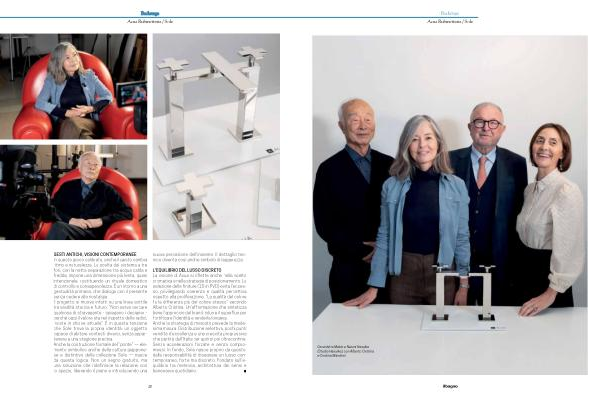 L ' EQUILIBRIO DEL LUSSO DISCRETO La visione di Acua si riflette anche nella scelta cromatica e nella strategia di posizionamento. La selezione delle finiture( 15 in PVD) evita l’ eccesso, privilegiando coerenza e qualità percettiva rispetto alla proliferazione.“ La qualità del colore fa la differenza più del colore stesso” secondo Alberto Cristina. Un’ affermazione che sintetizza bene l’ approccio del brand: ridurre il superfluo per fortificare l’ identità e renderla longeva. Anche la strategia di mercato prevede la medesima misura. Distribuzione selettiva, pochi punti vendita d’ eccellenza e una crescita progressiva che partirà dall’ Italia per aprirsi poi oltreconfine. Senza accelerazioni forzate e senza compromessi. In fondo, Sole nasce proprio da questo: dalla responsabilità di disegnare un lusso contemporaneo, forte ma discreto. Fondato sull’ e- quilibrio tra memoria, architettura dei sensi e benessere quotidiano.